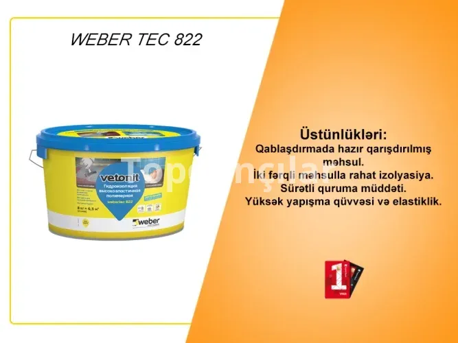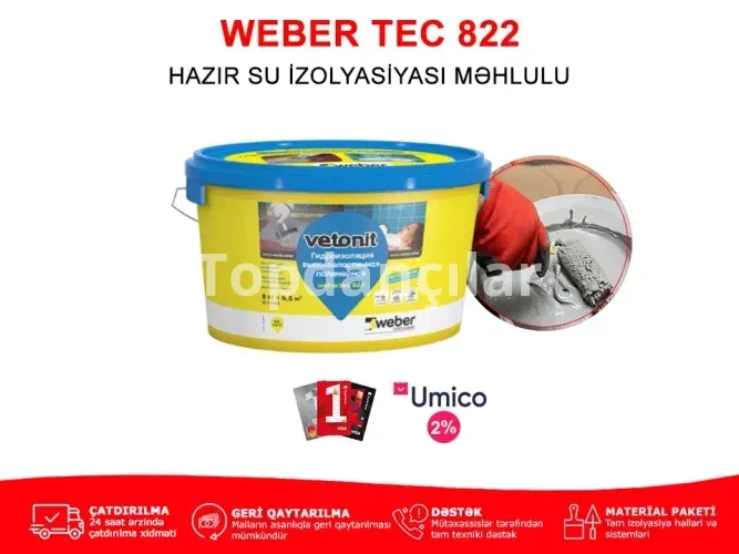 İki kompanentli tam elastik "Weber.vetonit tec 822" qablaşdırmada iki kompanenti də qarışdırılmış vaziyyətdədir. Buna görədə hər hansı istənilən şəxs belə məhsulu rahat istifadə edə bilər.