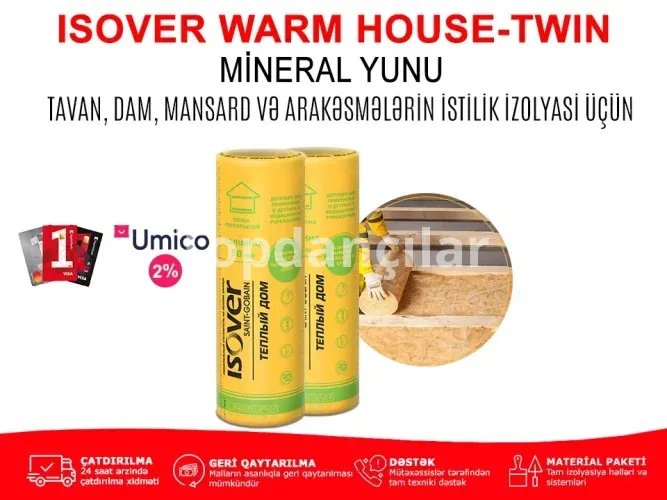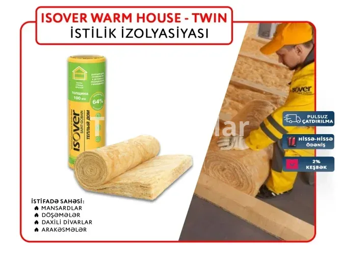 Ekonomik və effektli istilik izolyasiyasına sahib olan "İsoverWarm House twin" universal kvars əsaslı mineral yunu olduğundan demək olar ki evin istənilən sahələrində istifadə üçün yararlıdır. Mansard, tavan, döşəmə, daxili divarlar və s. istənilən bütün ağırlıq tətbiq edilməyən sahələr üçün istifadəsi mümkündür.